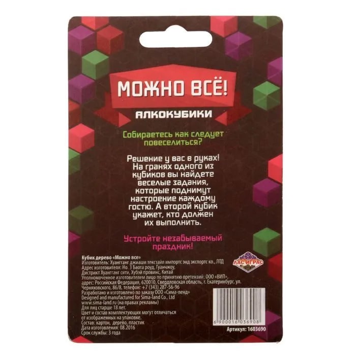 Купить кубик "можно все", алкокубики для принятия решений от 60 руб. с доставкой до пункта выдачи в Находке. Интернет магазин ДекаМаркет. Оплата при получении.